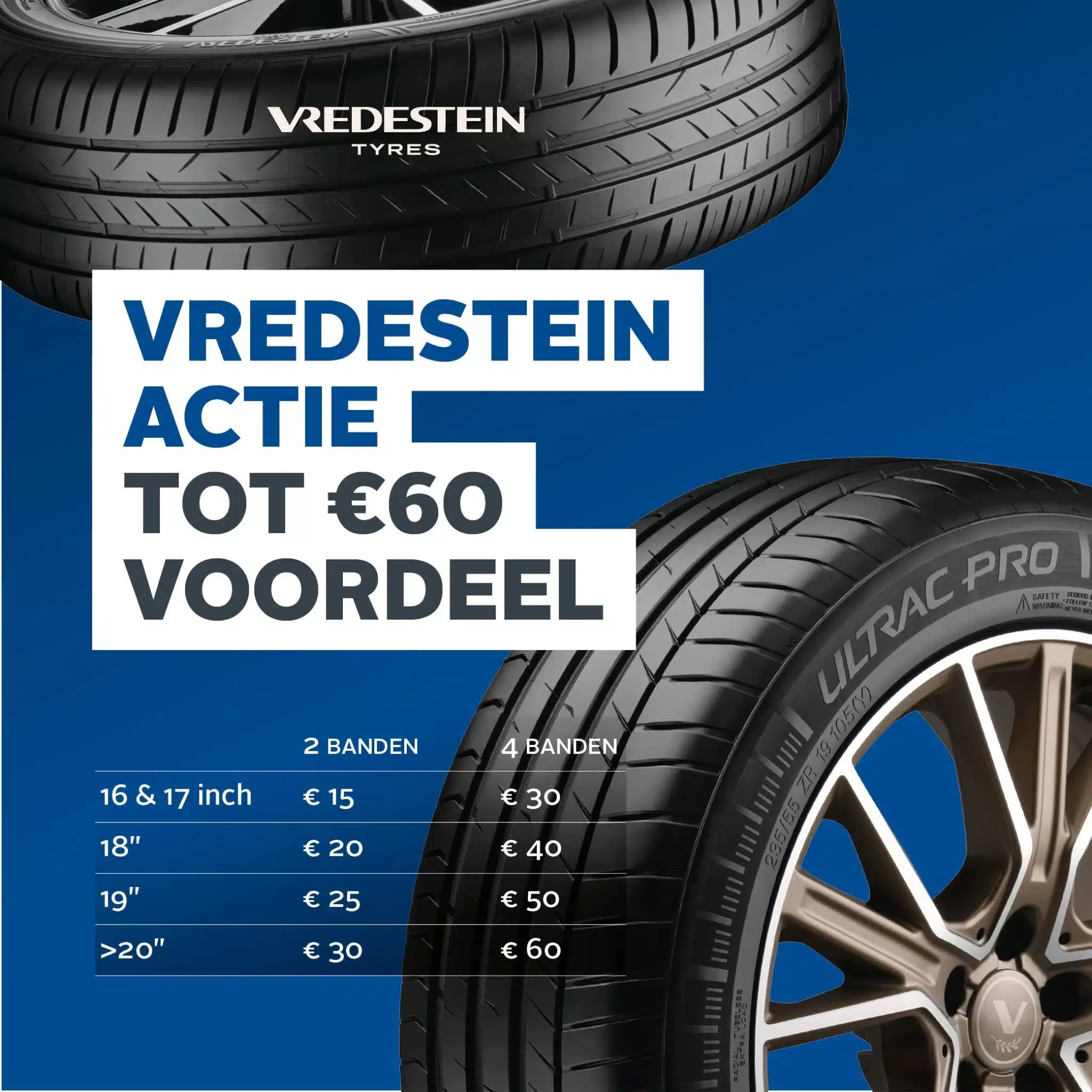 • Ontvang een bonus bij aankoop van minimaal 2 Vredestein banden;